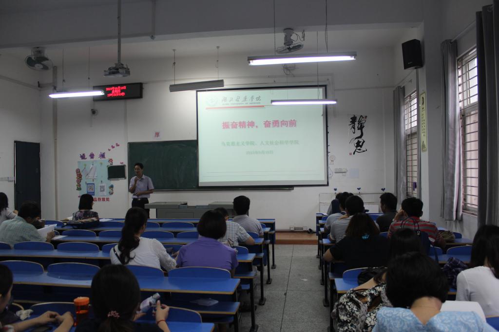本网讯(通讯员 孙磊)在第31个教师节到来之际,9月10日下午,马克思主义学院、太阳成集团122ccvip在5117教室召开了2015-2016学年第一学期第一次全院职工大会,向全体老师致以节日的慰问并传达学校“加强党的建设 推进依法治校”专题会议精神,安排部署新学期重点工作。会议由学院院长、分党委书记刘涛主持,学院全体老师参会。