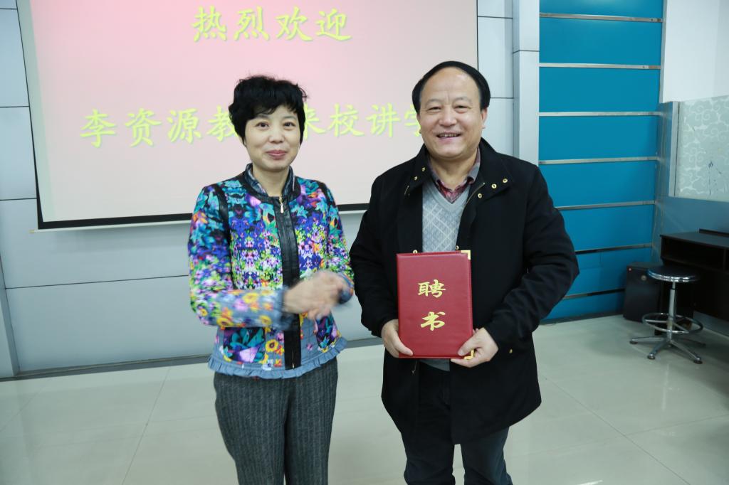 严世荣代表学校为李资源教授颁发客座教授聘书。