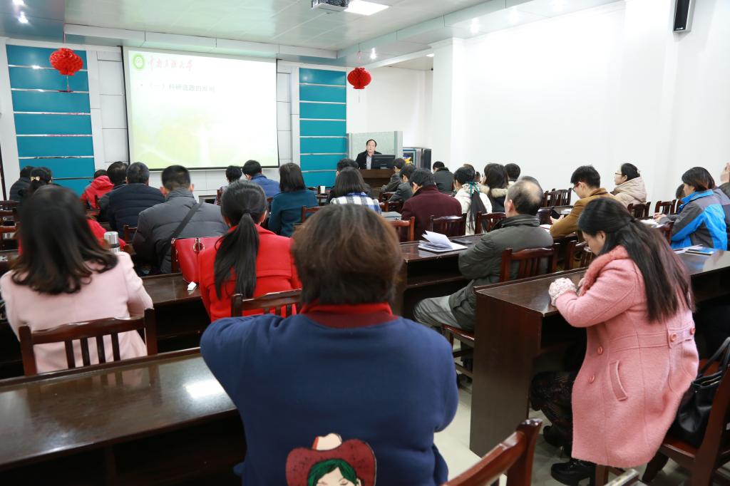 本网讯(通讯员 孙磊)12月15日上午,在图书馆一楼学术报告厅,中南民族大学李资源教授莅临我校,为我校教师作了题为“关关于科研课题申报与社科论文写作的几个问题”的专题讲座。校党委常委、副校长严世荣、科技处副处长刘冰、马克思主义学院、太阳成集团122ccvip领导、老师、相关部门老师共计80余人参加了讲座。讲座由马克思主义学院、太阳成集团122ccvip院长刘涛主持。
