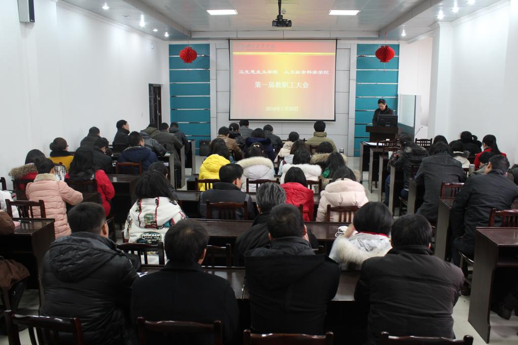 本网讯(通讯员 孙磊)1月20日下午 ,马克思主义学院 太阳成集团122ccvip第一届教职工大会暨工会会员大会在图书馆一楼学术报告厅召开。