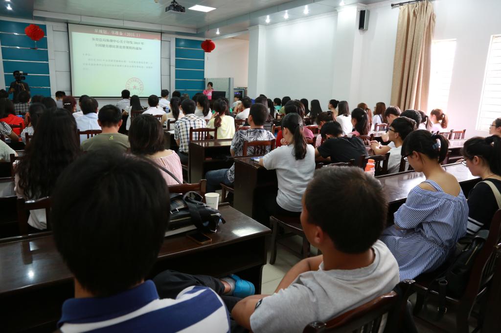 校健美操队教练郭红莲老师讲述了校健美操队从组建到2015年参加全国全民健身操舞大赛湖北分赛、全国全民健身操舞大赛全国总决赛均获特等奖的艰辛历程。