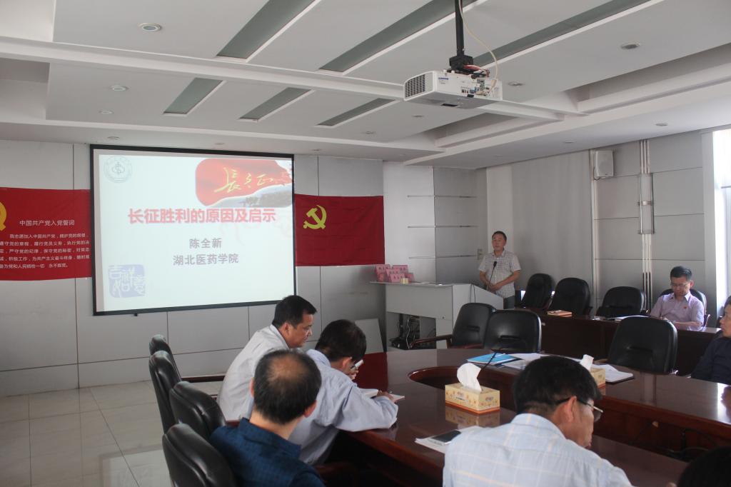 主题党日活动严格按照“7+X”规定动作进行。全体党员交纳了9月份的党费。全体起立,齐唱国歌;面向党旗庄严宣誓,重温入党誓。学院第二党支部符俊老师领学了习近平系列讲话之《提高解决改革发展基本问题的本领——关于科学的思想方法和工作方法》,第二党支部书记陈全新为全体党员作了《长征胜利的原因及启示》的专题党课。大家集中观看了“我们的价值观 我们的中国梦”精彩课堂《做一个友善的人》视频,观看结束后,大家围绕如何践行社会主义核心价值观、中国梦开展了讨论。