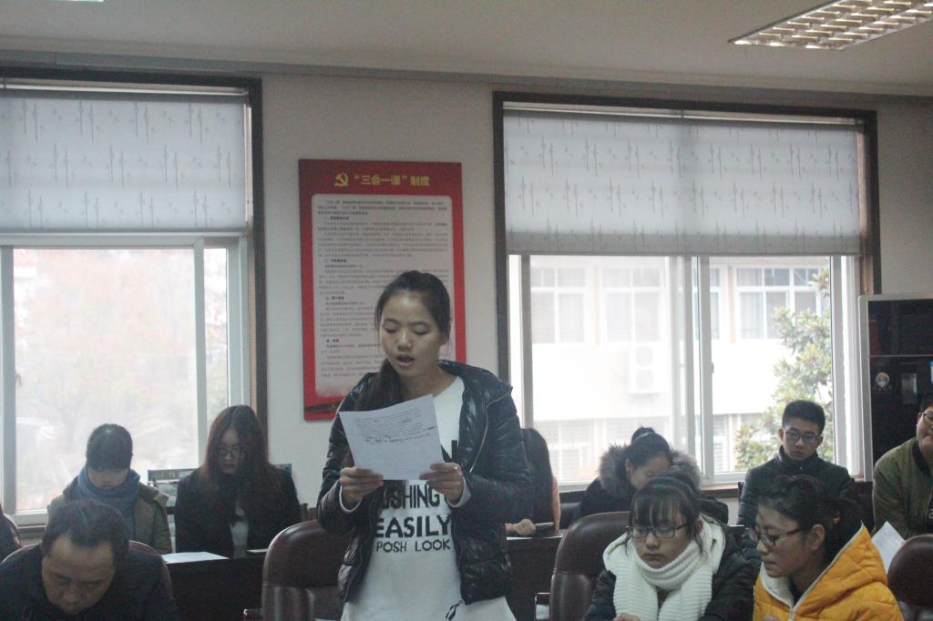李惠同学代表16应用心理学43名学生表达了对学校、学院和导师们重视学生重视专业的感谢。表示将好好利用图书馆进行自学、参加社团锻炼各方面能力、在导师们指导下努力学习。