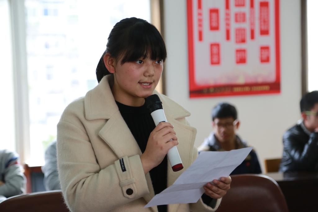 受助学生代表蒋思洁同学表达了对学校、爱心学长学姐的感谢,表示要以优异的成绩回报学校和社会爱心人士的关爱,不辜负大家的期望。