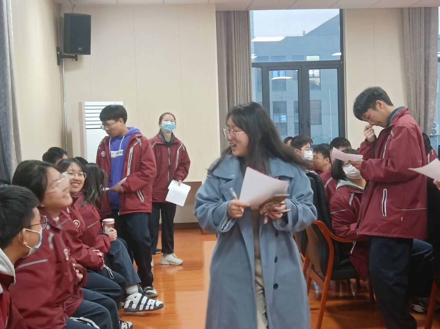 在车城高中的年级会议室里,成员欧阳瑞婷和解为领导两组同学进行了“红黄牌”和“大拍卖”游戏,解为与潘丹青辅助。