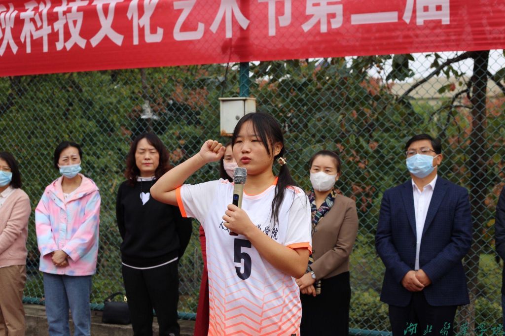 之后裁判员代表李芷瑞同学、运动员代表陈芊同学依次宣誓,表示要遵守排球赛相关规则,发挥应有水平,呈现一场精彩的赛事。