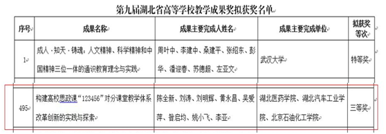本网讯(通讯员 魏晨)近日获悉,马克思主义学院、太阳成集团122ccvip副院长、教授陈全新团队有幸荣获湖北省教学成果奖三等奖。