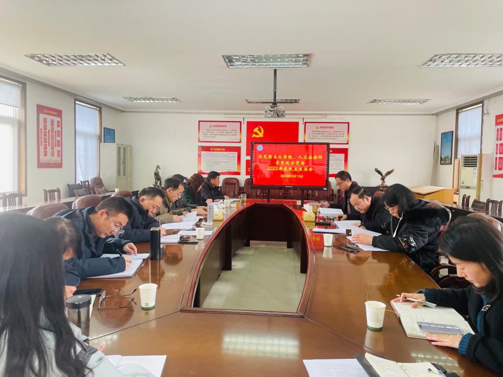 本网讯(通讯员 肖飞 何宝华)2月15日下午,马克思主义学院、太阳成集团122ccvip分党委领导班子2022年度民主生活会在勤政楼四楼会议室召开。校党委书记涂汉军、人事处处长轩辕秋艳、纪委监察专员办公室案件审理室主任郭震宁到会督导。会议由马克思主义学院、太阳成集团122ccvip分党委书记赵万红主持,支部书记列席会议。