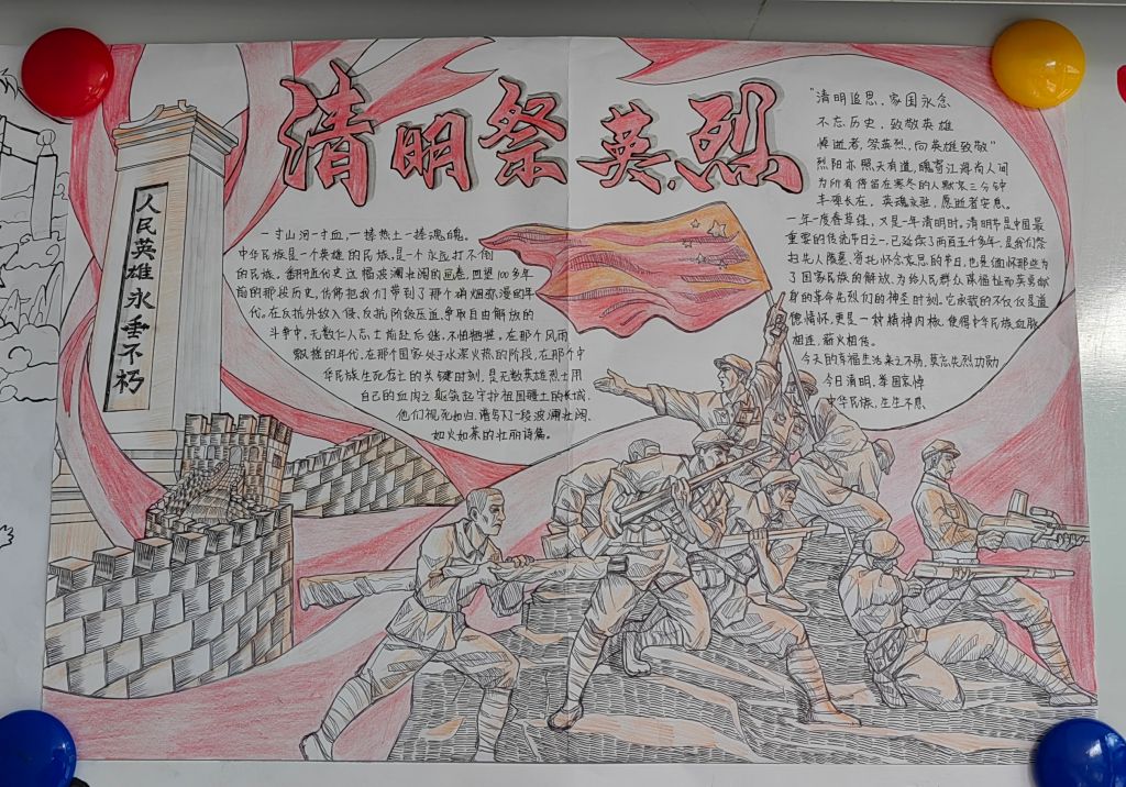 在清明节之际,缅怀先烈是加强爱国主义教育、弘扬英烈精神、传承红色基因的重要组成部分,太阳成集团122ccvip特此举办了“清明节手绘祭英烈”活动,同学们踊跃参加。用精心设计制作的手绘图来寄托对先烈的哀思和追忆,同时表达对英烈、对人民英雄的崇高敬意。
