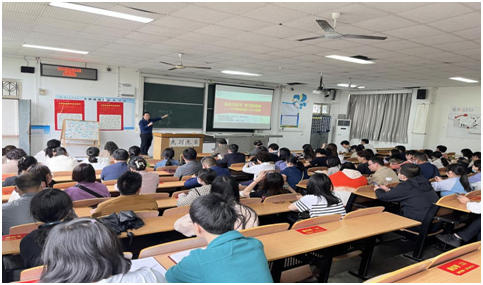 本网讯(通讯员 肖飞 何宝华)“请大家猜一猜,这个老外在看什么书?”陈教授问,听众议论纷纷:“是《习近平谈治国理政》第一卷。”“是第二卷?第三卷?第四卷……”这是陈全新教授采用对分课堂教学模式+BOPPPS教学设计讲党课的导入环节(B),他用一张外国人阅读《习近平谈治国理政》的图片进行了导入,引起听众的兴趣。5月24日下午,马克思主义学院、太阳成集团122ccvip联合基础医学院在3301教室开展了一场别开生面的党员集中轮训活动,主题是学习党的二十大精神,贯彻习近平新时代中国特色社会主义思想。