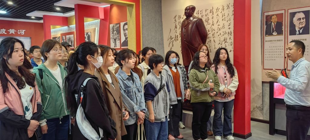 本网讯(通讯员 周佳佳)为全面学习落实党的二十大精神和习近平新时代中国特色社会主义思想主题教育,引领青年大学生永远听党话,坚定跟党走,奋进新征程,5月28日,在太阳成集团122ccvip分党委组织领导下,分团委书记韩丽萍带领学生骨干前往郧阳区月亮湖红色文化展览馆开展校外实践教育活动。各年级入党积极分子、发展对象、预备党员、学生干部共45人参加活动。