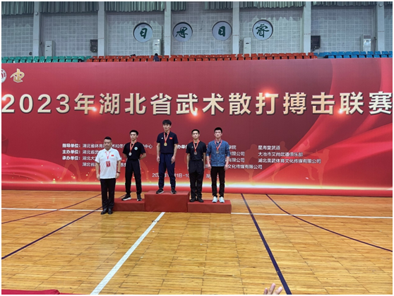 本网讯(通讯员 时保平)9月30日-10月3日,由湖北省体育局武术和冬季运动管理中心指导,湖北省武术协会主办,湖北大学、湖北省武术协会散打搏击研究会共同承办的2023年湖北省武术散打搏击联赛暨中国武术段位赛在湖北大学圆满落幕。本次比赛共有23所高校百余名运动员参加。我校基础医学院2022级研究生徐鹏翔同学在教练员时保平老师的指导下参赛,比赛中不畏强手,顽强拼搏,最终斩获男子64kg级铜牌,为学校赢得了荣誉。
