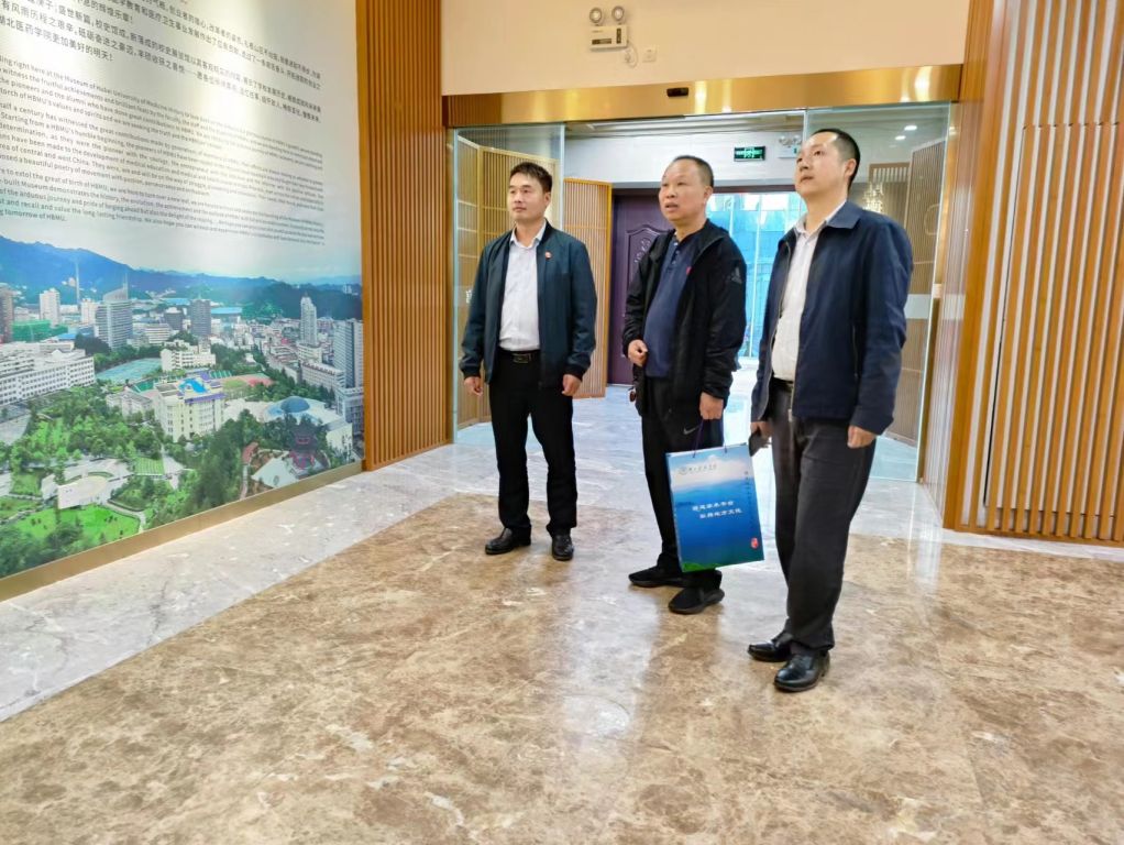 随后甘局长一行参观了学校校史馆,马克思主义学院王刚老师、彭晓旭博士、在职研究生冯寸、研究中心后勤保障部金永清一行参加坐谈。