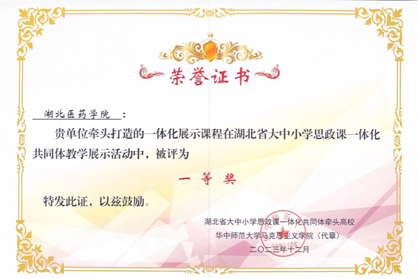 本网讯(通讯员 陈全新)近日,我校在湖北省大中小学思政课一体化共同体牵头高校华中师范大学组织的2023年度湖北省大中小学思政课一体化共同体教学展示活动中荣获一等奖。