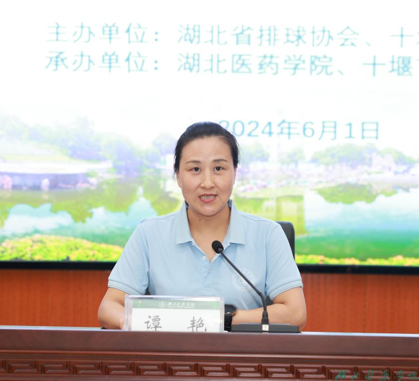 谭艳在开班式上致辞,代表学校对省市排球协会各位领导、技术专家和来自全省的参训学员表示热烈欢迎,并以“四张名片”介绍了我校基本情况和排球运动情况。我校重视排球运动,建立了排球运动场馆,每年举办各层次排球比赛活动约30余场,在省市组织的各项比赛中屡获佳绩。谭艳希望通过本次培训进一步加强我省和我校排球裁判员队伍服务能力建设,为健康中国、健康湖北赋能。