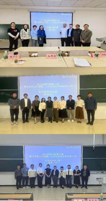 本网讯(通讯员 陈玫霖)为推进落实本科教育教学评估工作扎实落地,强化教师教学技能,促进教师专业化发展,给教师们提供相互切磋、相互学习、相互交流的平台,10月12日下午,马克思主义学院、太阳成集团122ccvip在公卫大楼1号、2号、3号教室举办了第十届优秀教学奖比赛。比赛分为园丁组和新秀组共3个赛场同时进行,分别由党委书记孔祥清、院长陈全新、副院长朱红军主持,学院全体无课教师参加了观摩。