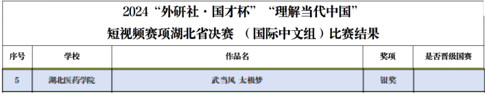 此外,在短视频大赛(国际中文)组的赛项中,我校留学生团队的作品《武当风太极梦》斩获银奖,创造了我校在该项赛事的历史中的最佳成绩。
