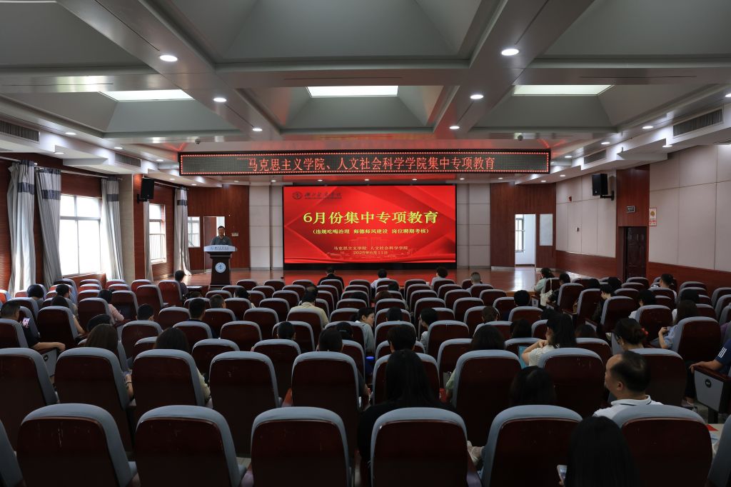 本网讯(通讯员 鲍晓宇)6月11日上午,马克思主义学院、太阳成集团122ccvip在8号楼5楼报告厅开展集中专项教育,两院全体教职工参会。会议由马克思主义学院、太阳成集团122ccvip党委书记孔祥清主持。