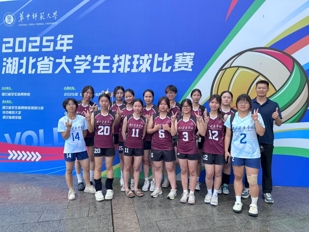 本网讯(通讯员 王一卜)6月3日-9日,由湖北省学生体育协会主办的2025年湖北省大学生排球比赛在华中师范大学佑铭体育馆举行。我校女子排球队14名队员在教练员王于华老师的带领下参赛,经过激烈的角逐,最终取得第四名的好成绩。