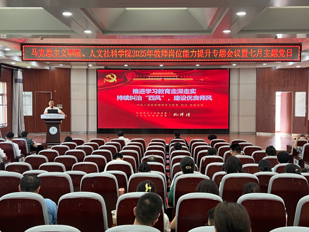 根据学习教育工作安排,两院党委书记孔祥清围绕“四讲”要求,以“推进学习教育走深走实、持续纠治‘四风’,建设优良师风”主题,为全院教职工开展了一次生动深刻、入脑入心的专题党课。党课分为四部分内容,一是学思践悟,从总书记作风建设论述中汲取智慧力量;二是成效斐然,中央八项规定精神落地生根的生动实践;三是警钟长鸣,违反中央八项规定精神和高校师德规范的沉痛教训;四是真抓实干,持续纠治“四风”建设优良师风的务实举措。