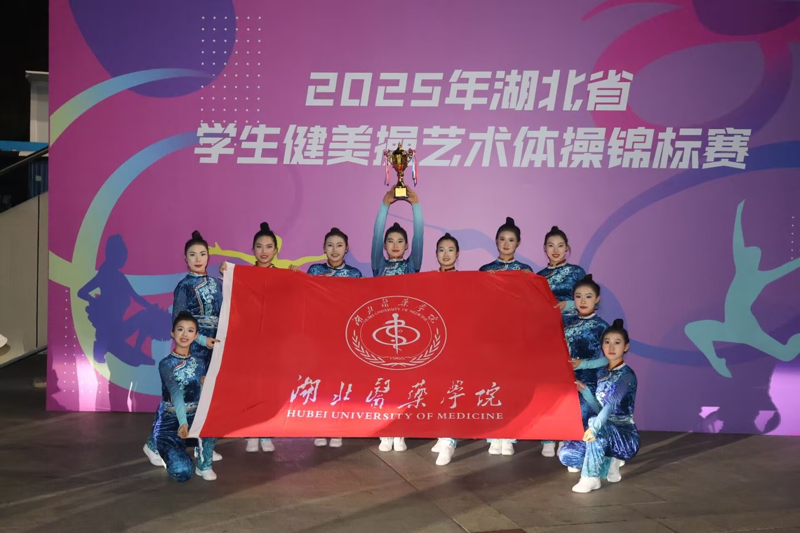 本网讯(通讯员 吴亚婷)12月5日至7日,2025年湖北省学生健美操艺术体操锦标赛在华中师范大学举行。来自全省105所大中小学的1737名选手参赛,在健美操、艺术体操、啦啦操、健身操舞、校园课间操等项目上展开角逐,我校健美操啦啦操队在教练员吴亚婷、郭红莲老师的带领参加了四个项目的比赛,分别获二等奖两项、三等奖两项的优异成绩!